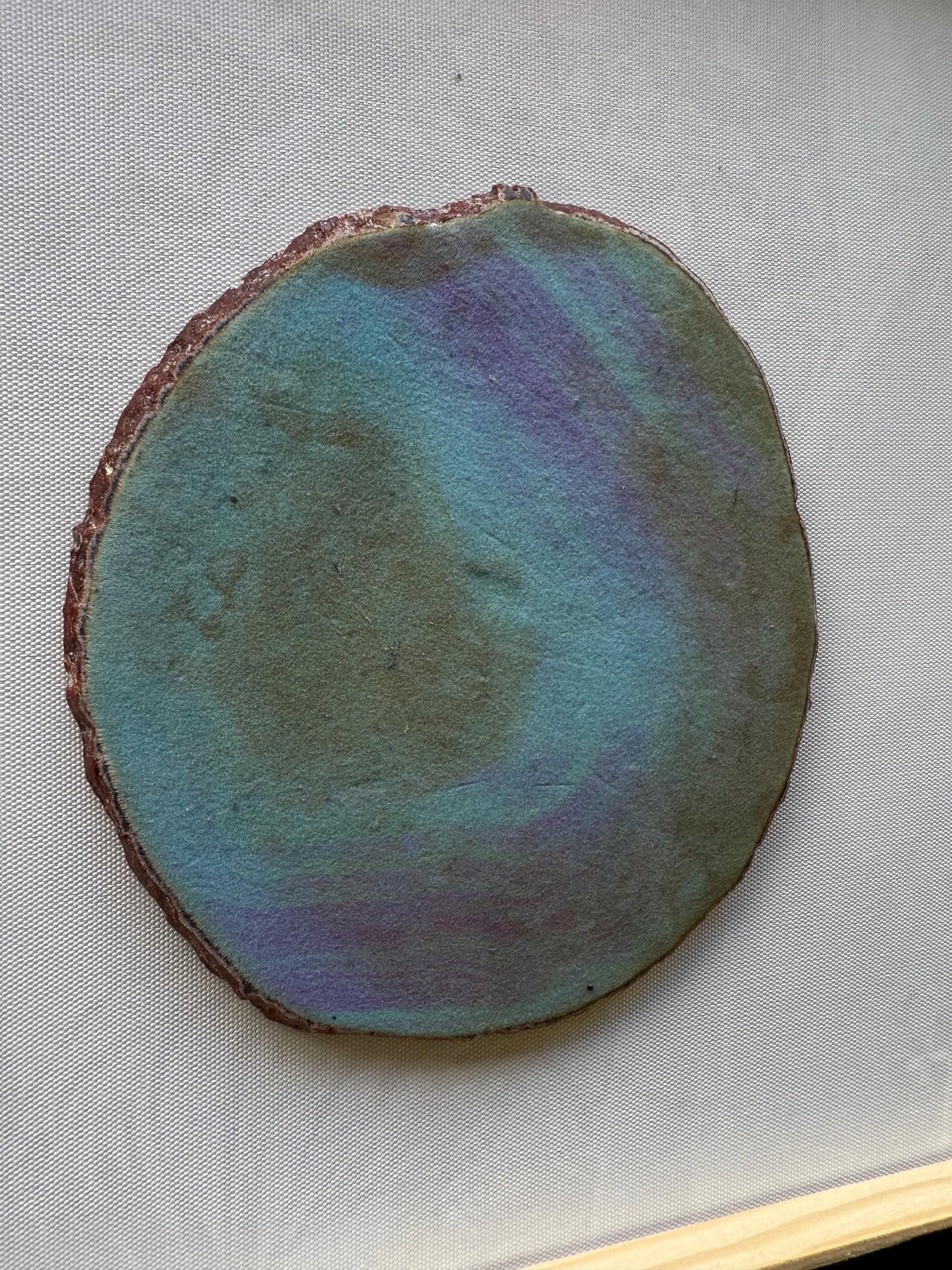 The product is a circle-shaped carnelian red rust amber Brazilian Agate Slice. This unique crystal is known for its striking color and geometric shape, making it a popular collectible item among those interested in rocks, fossils, and minerals. The agate slice showcases the natural beauty of Brazilian agate, which is prized for its iridescent colors and patterns. This piece would be a standout addition to any crystal or mineral specimen collection.