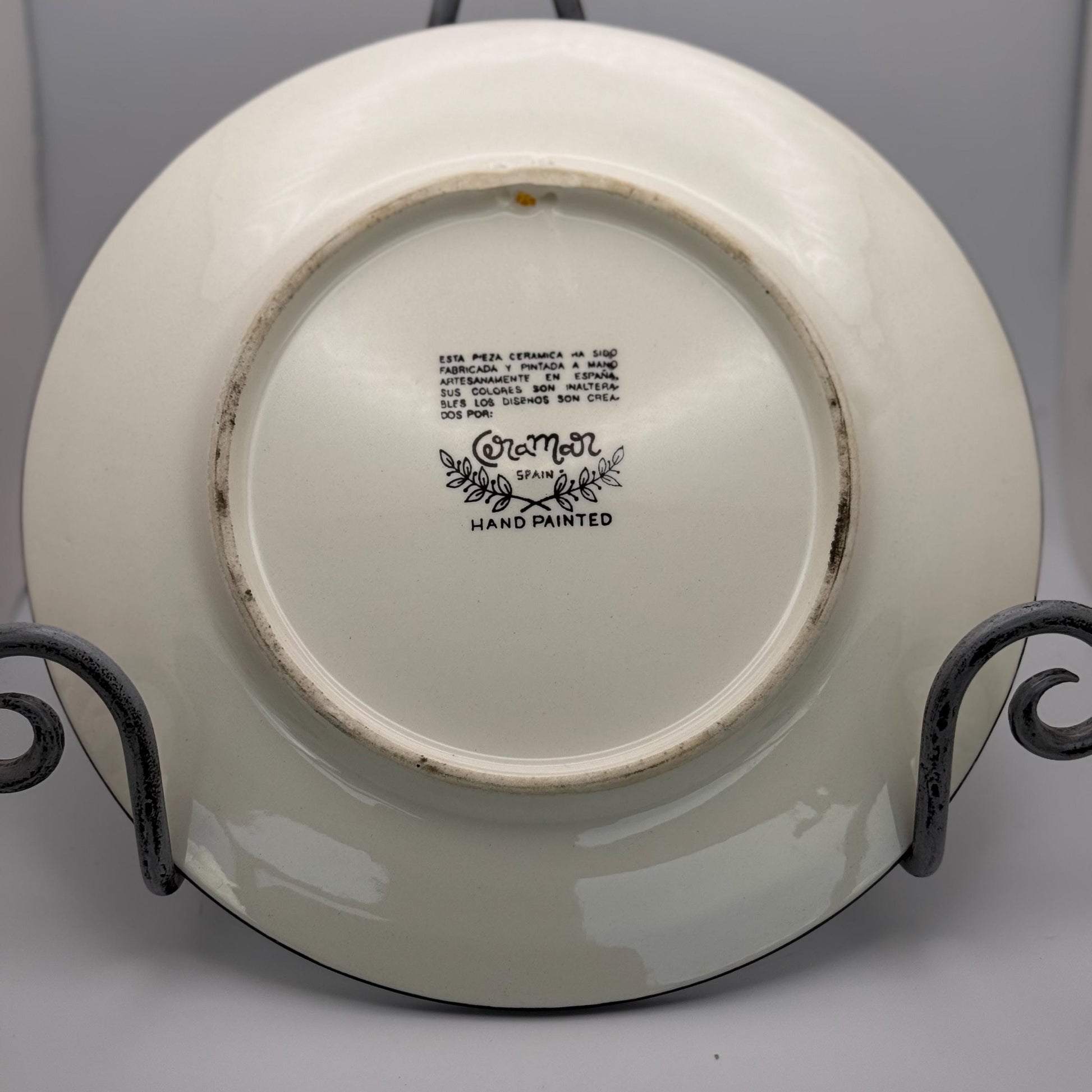 This vintage hand-painted flower pedals ceramic collector wall plate art from Spain by CeraMar Spain is a unique and decorative piece for all occasions. The round, multicolor plate features a floral pattern, making it perfect for those who appreciate art pottery production techniques. With a Spanish culture and handmade touch, this late 20th-century art piece showcases intricate details and a charming design that adds a touch of vintage flair to any space. Ideal for collectors of decorative pieces, this wall plate is a beautiful and authentic piece of Spanish pottery craftsmanship.