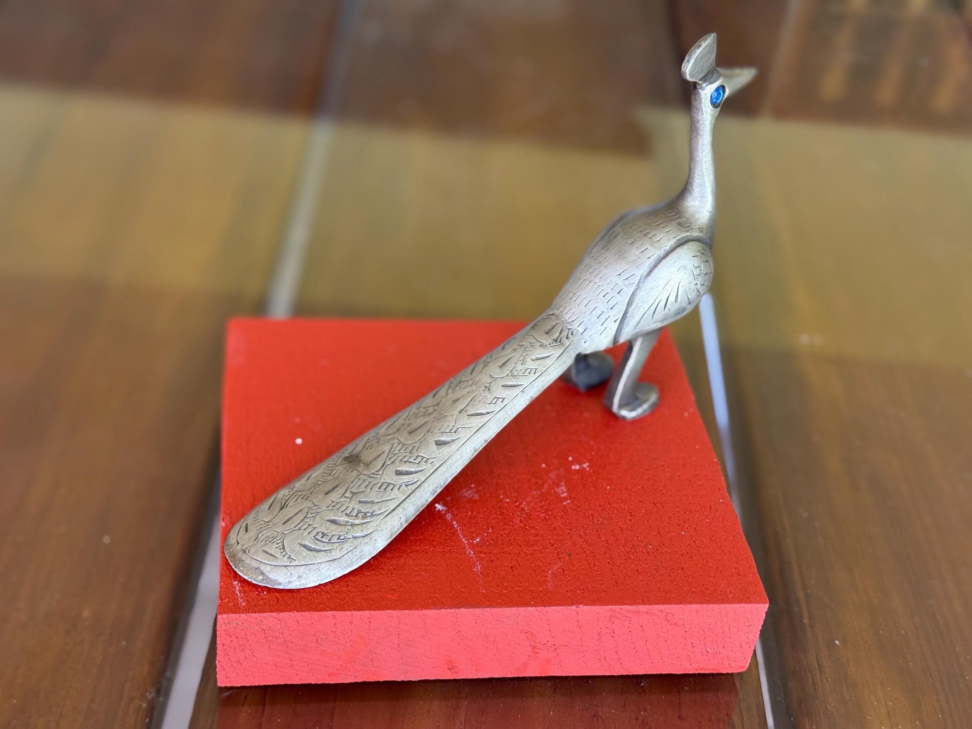 A Handcrafted Solid Brass Peacock Bird Engraved Vintage Figurine