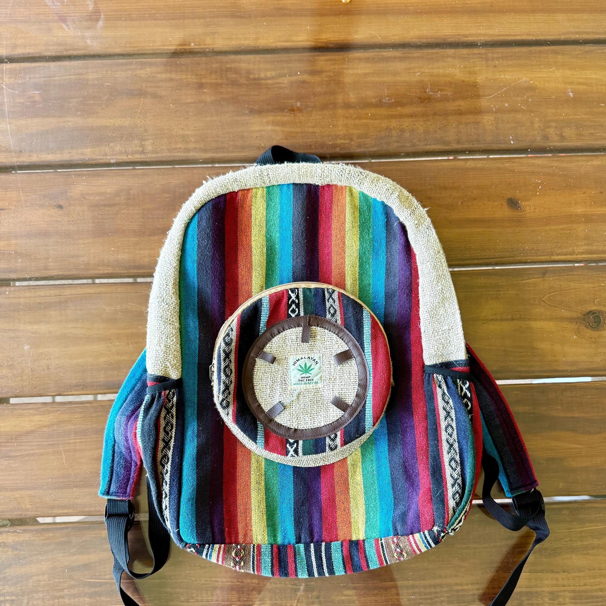 A Himalayan Hemp Organic Natural Large Retro Boho Hippie Colorful Art Bag Backpack