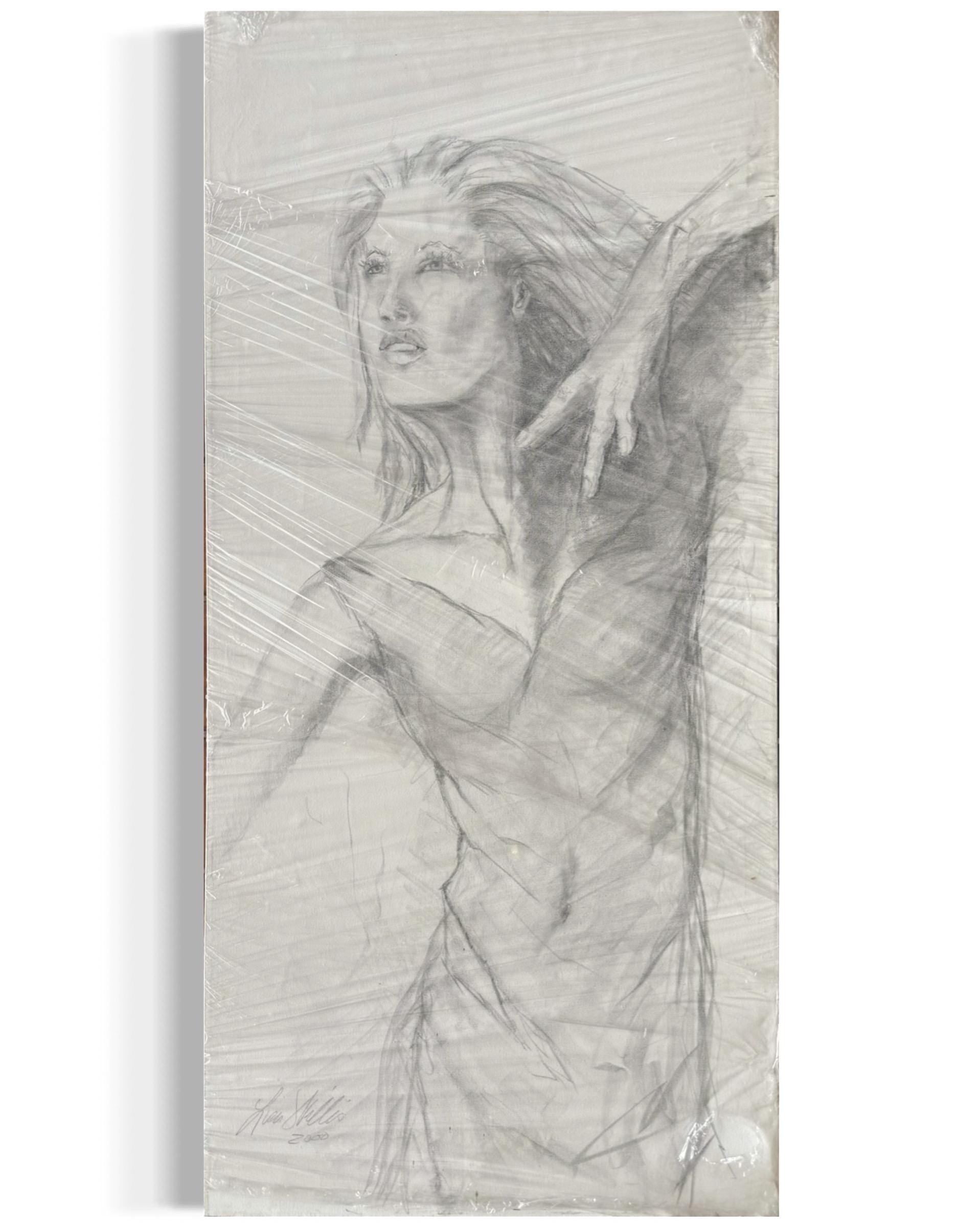 A Large Drawing Artist Artwork Original Signed Kim Skills Dated 2000 Woman Art