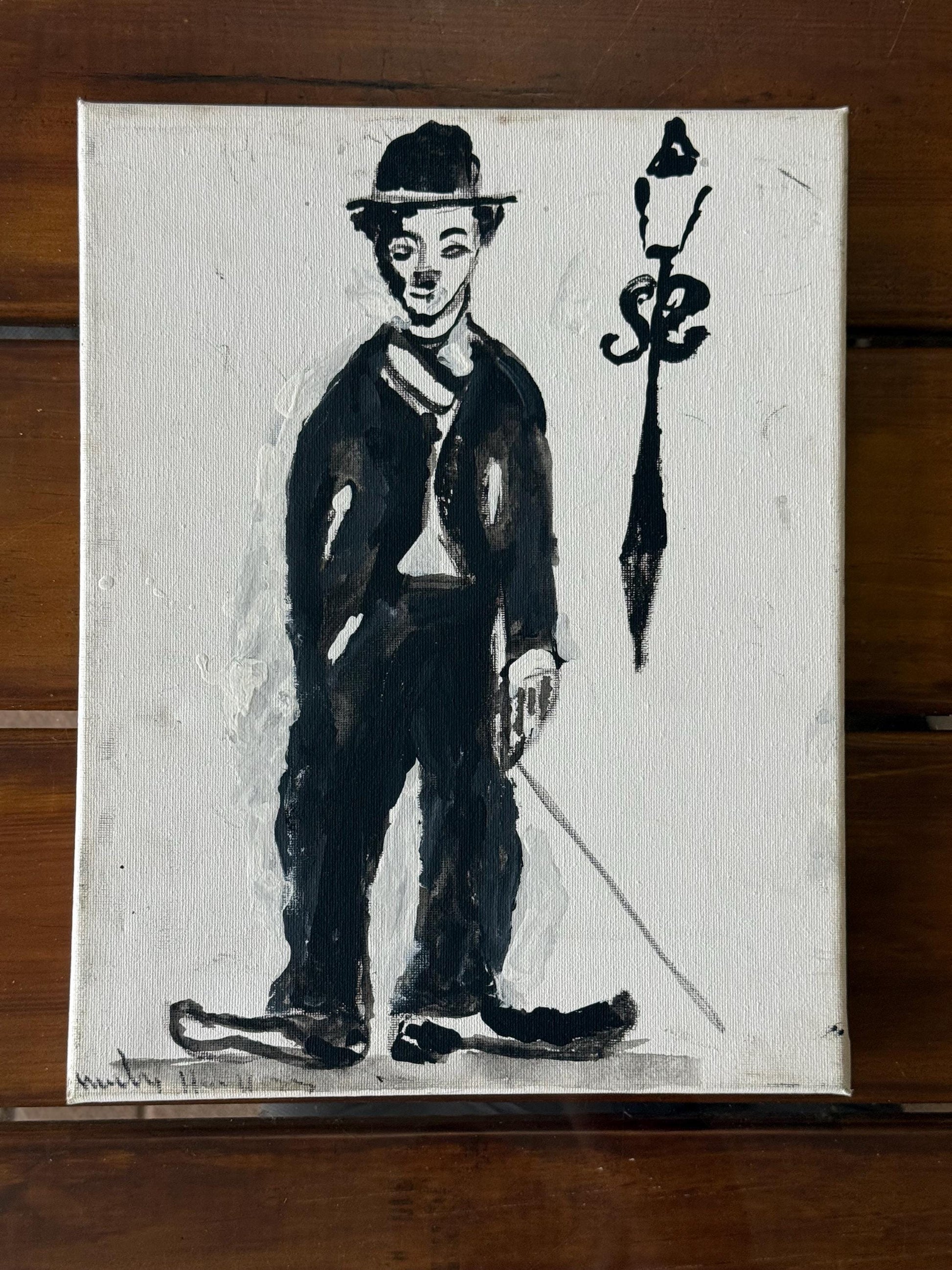 A Painted Canvas Artist Signed Original Artwork Art of Charlie Chaplin Debout #1