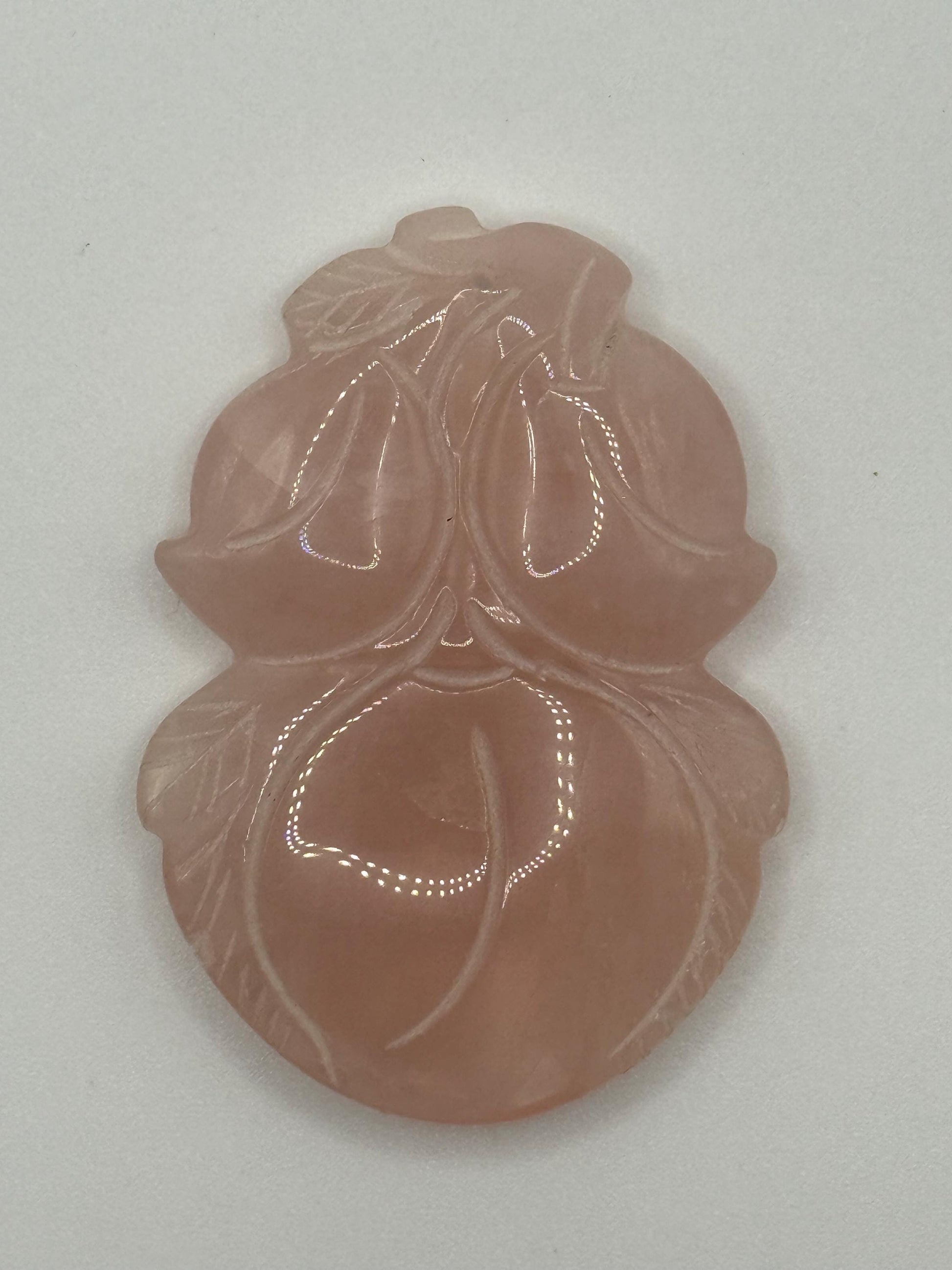 The product is a stunning hand-carved pendant charm featuring a Pink Jade Rose Pedal Flower design. This antique original piece showcases the beauty and elegance of fine gem art, with the pink color of the jade adding a touch of vibrancy to the overall design. Perfect for those who appreciate unique and intricate jewelry pieces with a touch of history and charm.