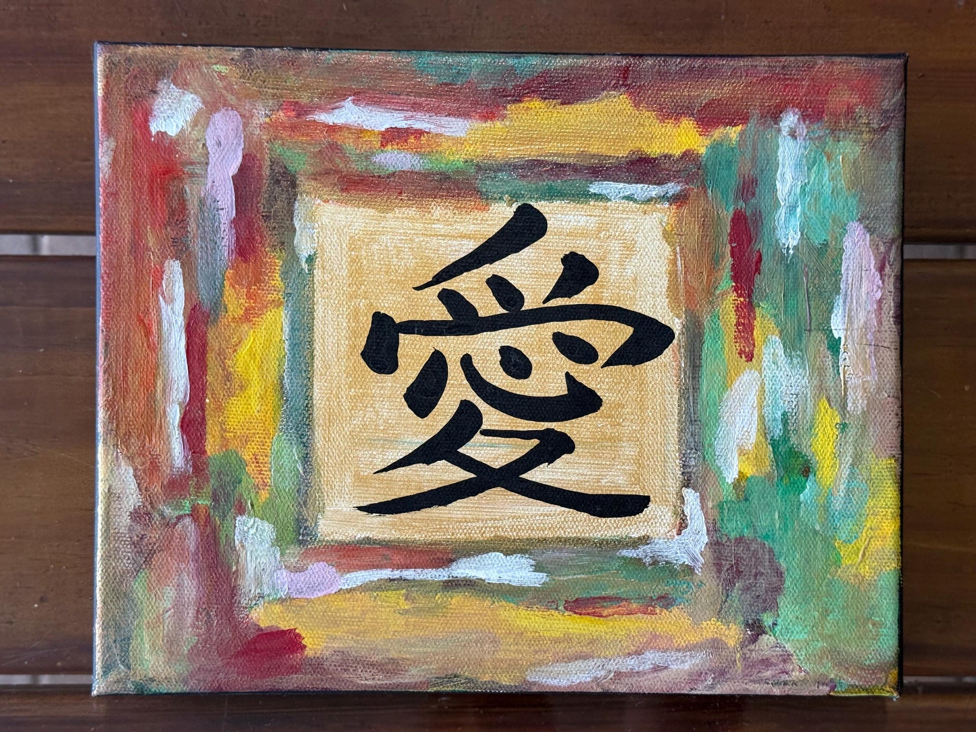 "Love" in Chinese Calligraphy Original Painting Small Canvas Art Artist Abstract