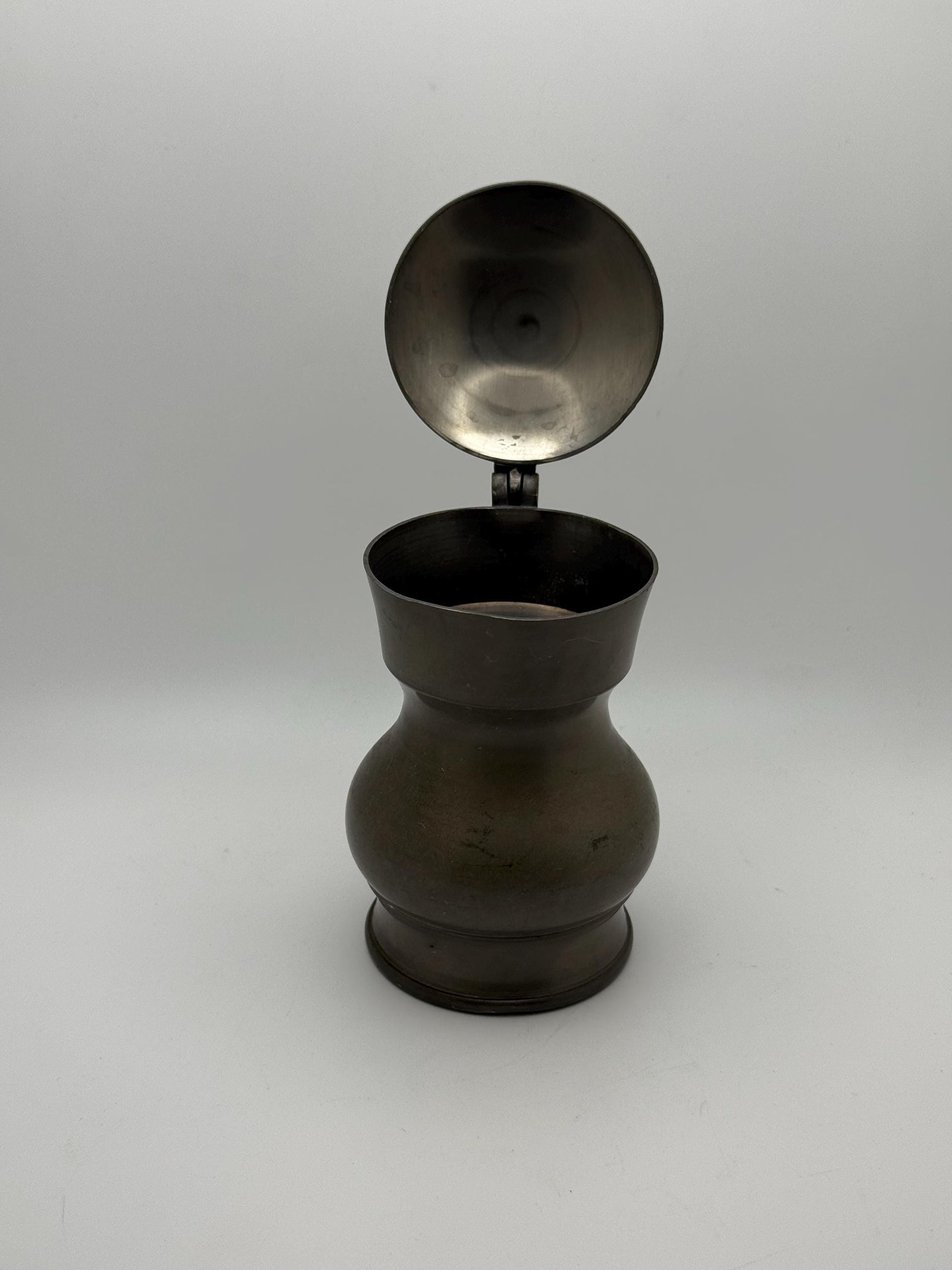 A Small French Silver Etain Lidded Wine Jug Cup Fine Vintage