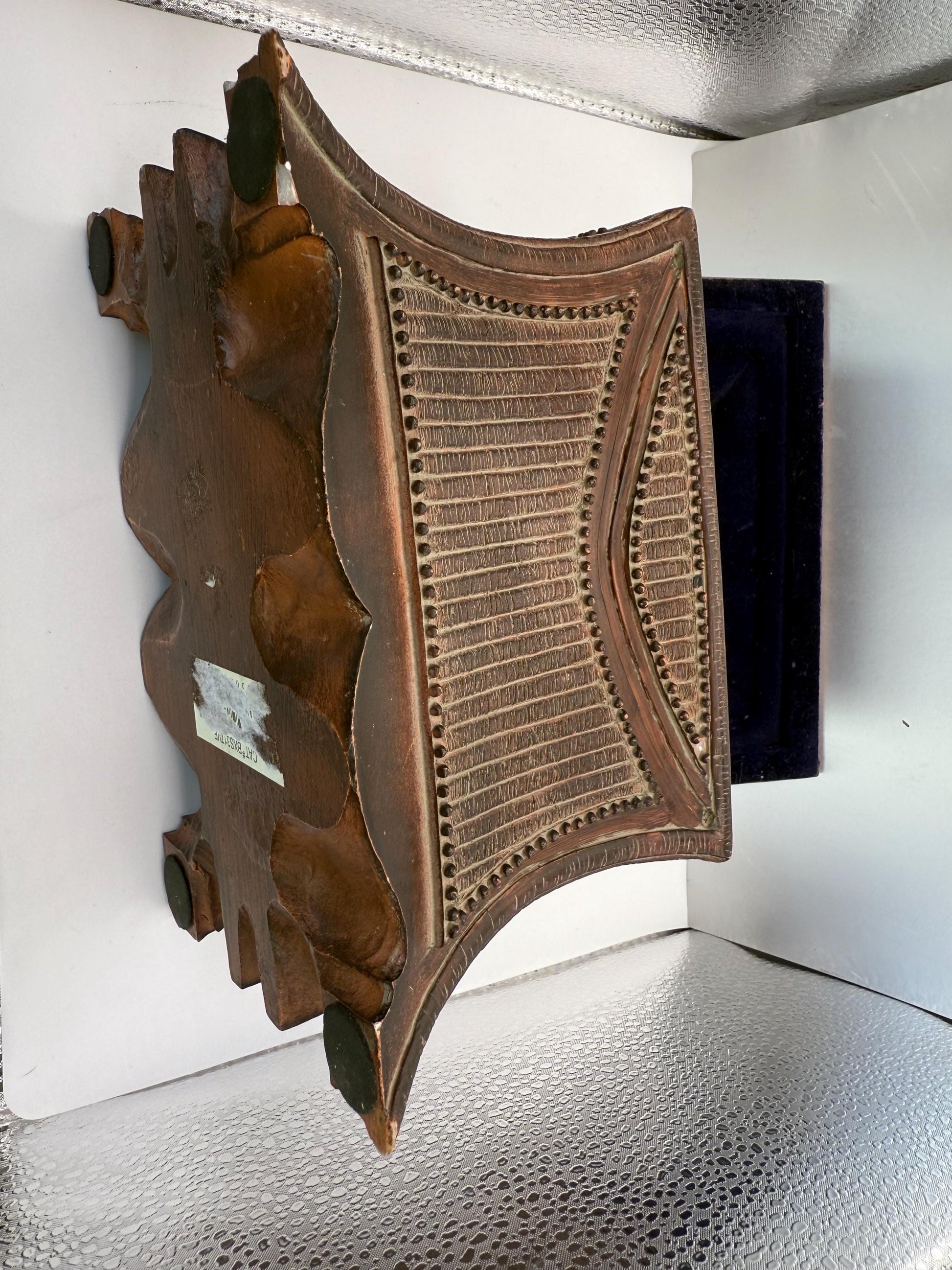 This vintage wooden oriental style jewelry box is handmade, making it truly unique and one-of-a-kind. The box features an elegant design with a suede-lined interior, perfect for storing and displaying various pieces of jewelry. Its traditional oriental style adds a touch of cultural charm to any room or collection. Ideal for those who appreciate craftsmanship and vintage aesthetics, this jewelry box is both functional and visually appealing.
