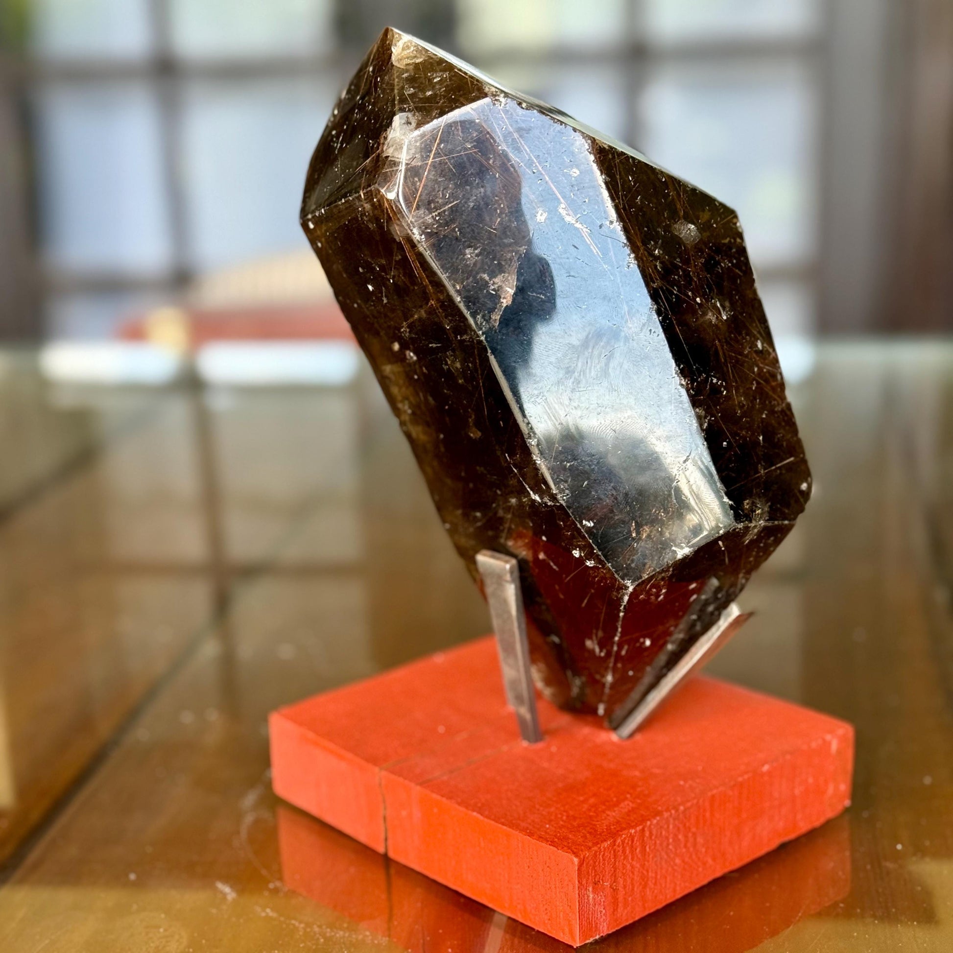 All Natural Huge Golden Rutilated Smoky Quartz Crystal with Pyrite Cubes inside