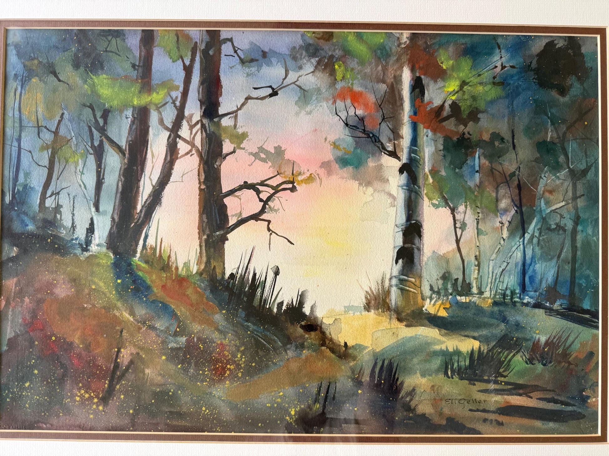 An Original Watercolor Painting Signed Eli Geller Art Colorful Forest Fantasy